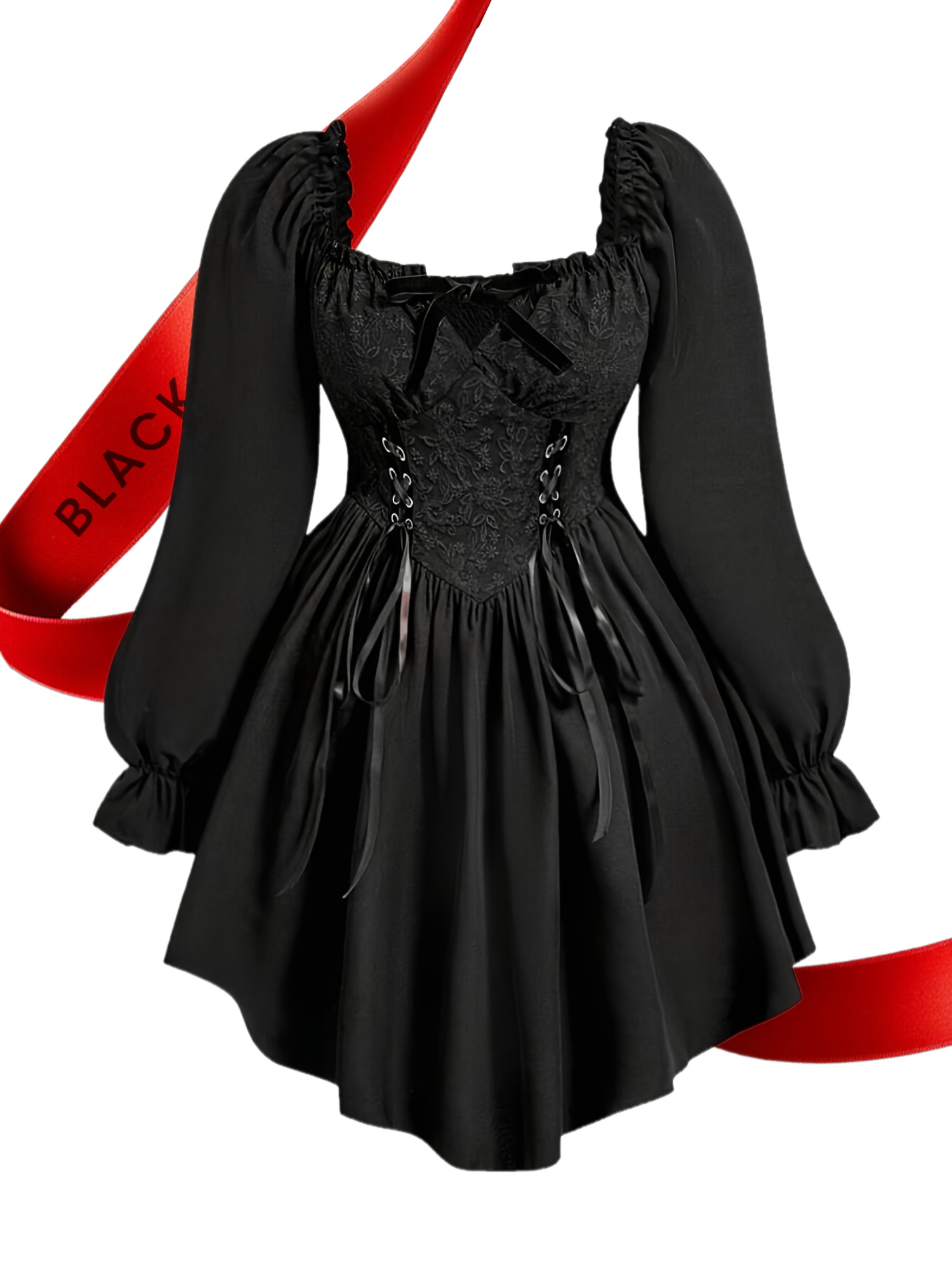 Plus Size Women's Dress with Jacquard Cross Lace Sleeves
