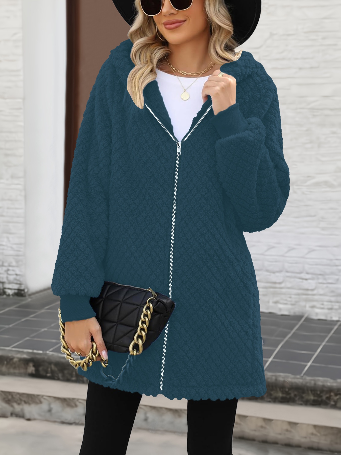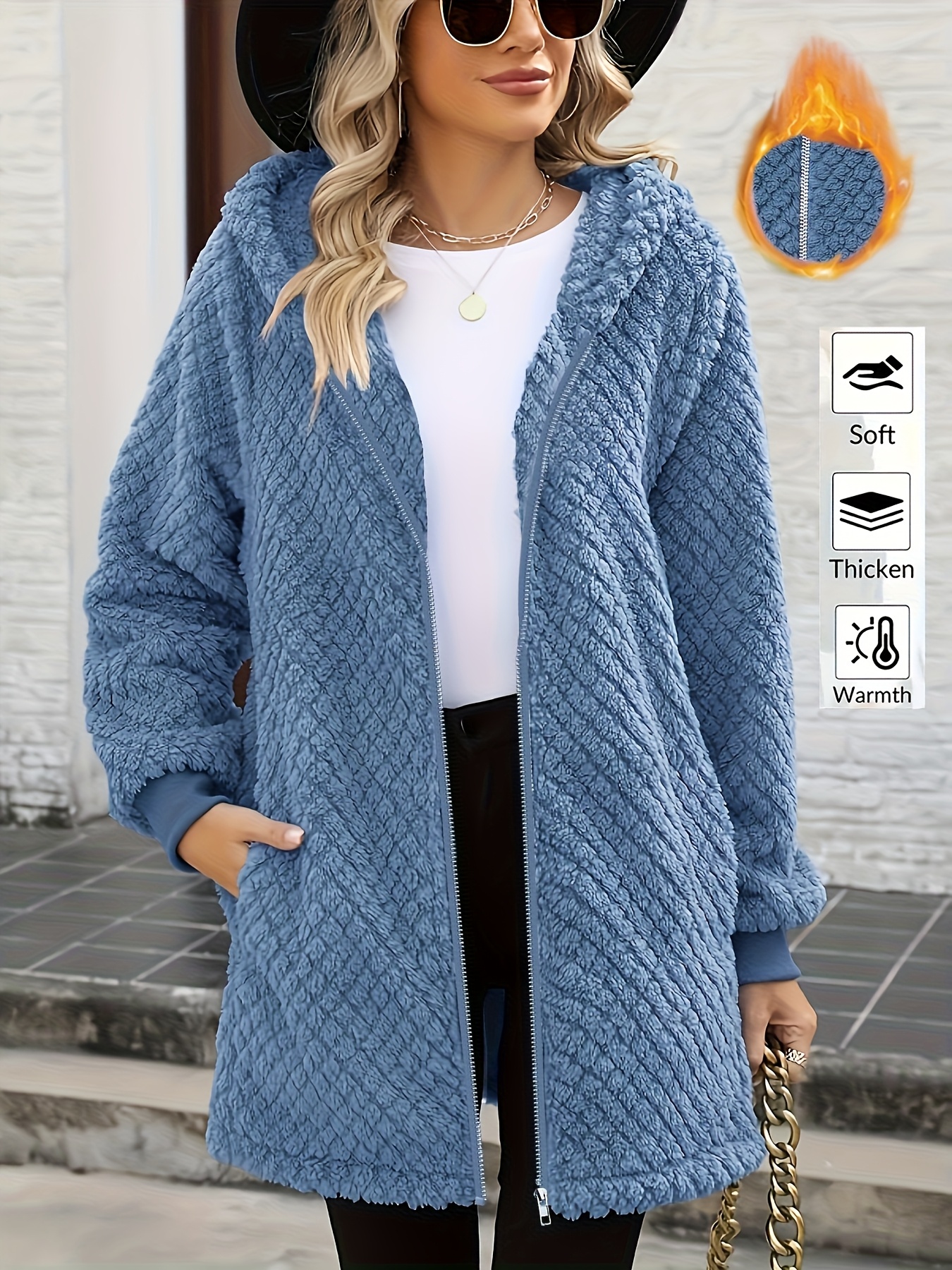 Women's Oversized Fleece Jacket with Hood & Pockets - Thick Winter Coat, Fuzzy Zip-Up Outerwear, Machine Washable, Cozy for all body Types (Fall/Winter) - Elegant Special Line Collection