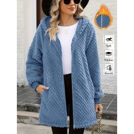 Women's Oversized Fleece Jacket with Hood & Pockets - Thick Winter Coat, Fuzzy Zip-Up Outerwear, Machine Washable, Cozy for all body Types (Fall/Winter) - Elegant Special Line Collection