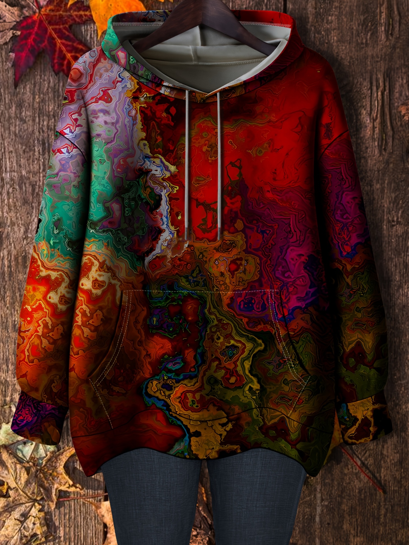 Plus Size, Plus Size Marble Texture Print Pattern, Casual Comfortable Plus Size Hoodie for Women, No Accessories Included