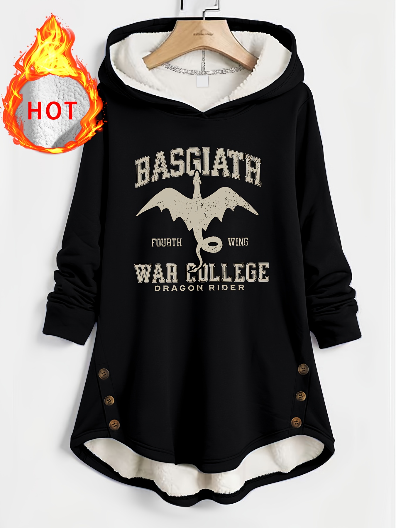 Plus Size - Women'S Plus Size Gothic Fantasy Hooded Coat - Heavyweight Winter Jacket with BSG Winged Dragon Rider Lettering, Lined Hood & Button Closure