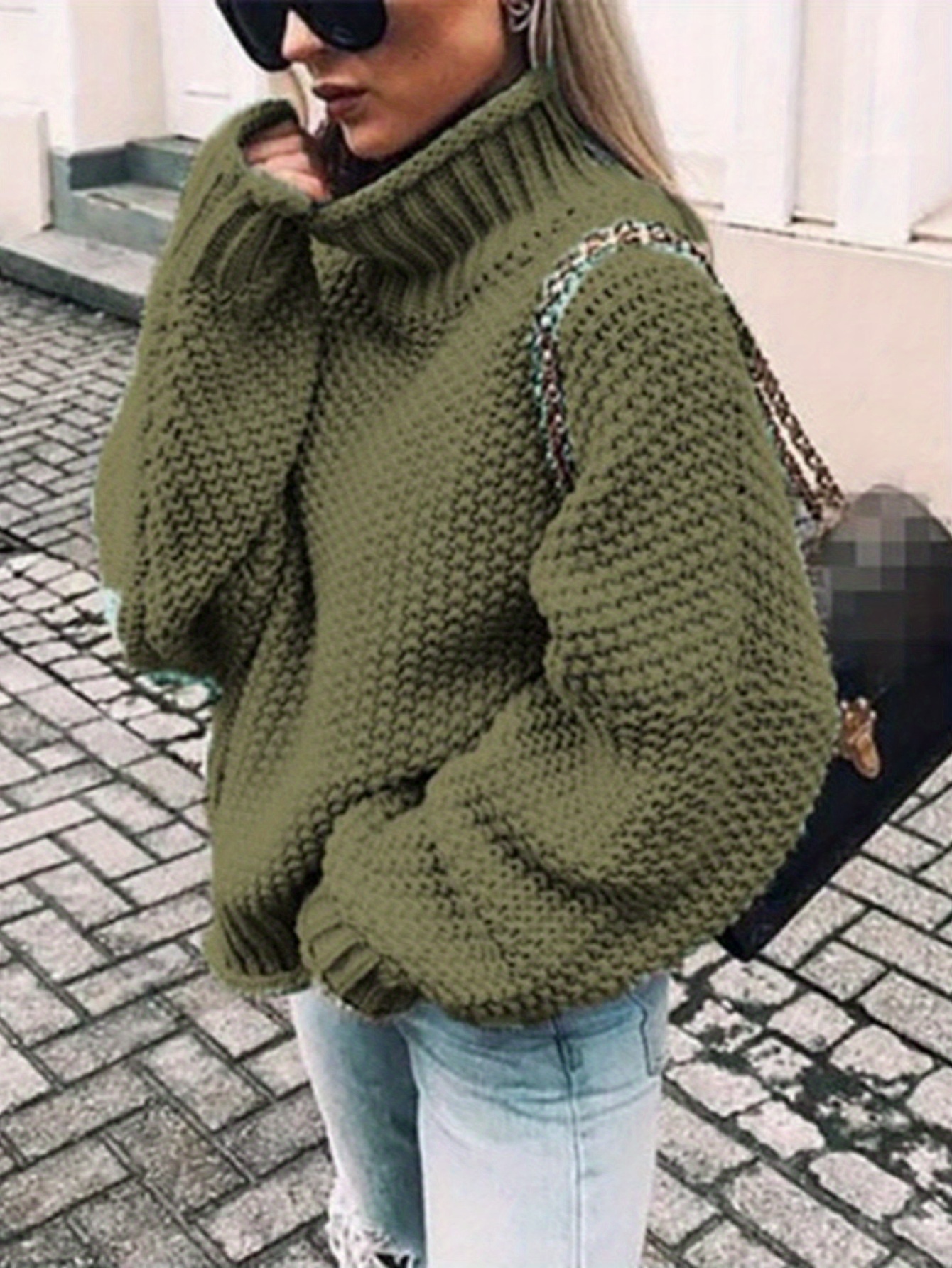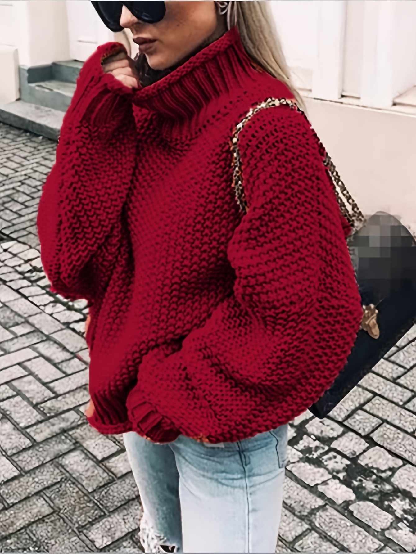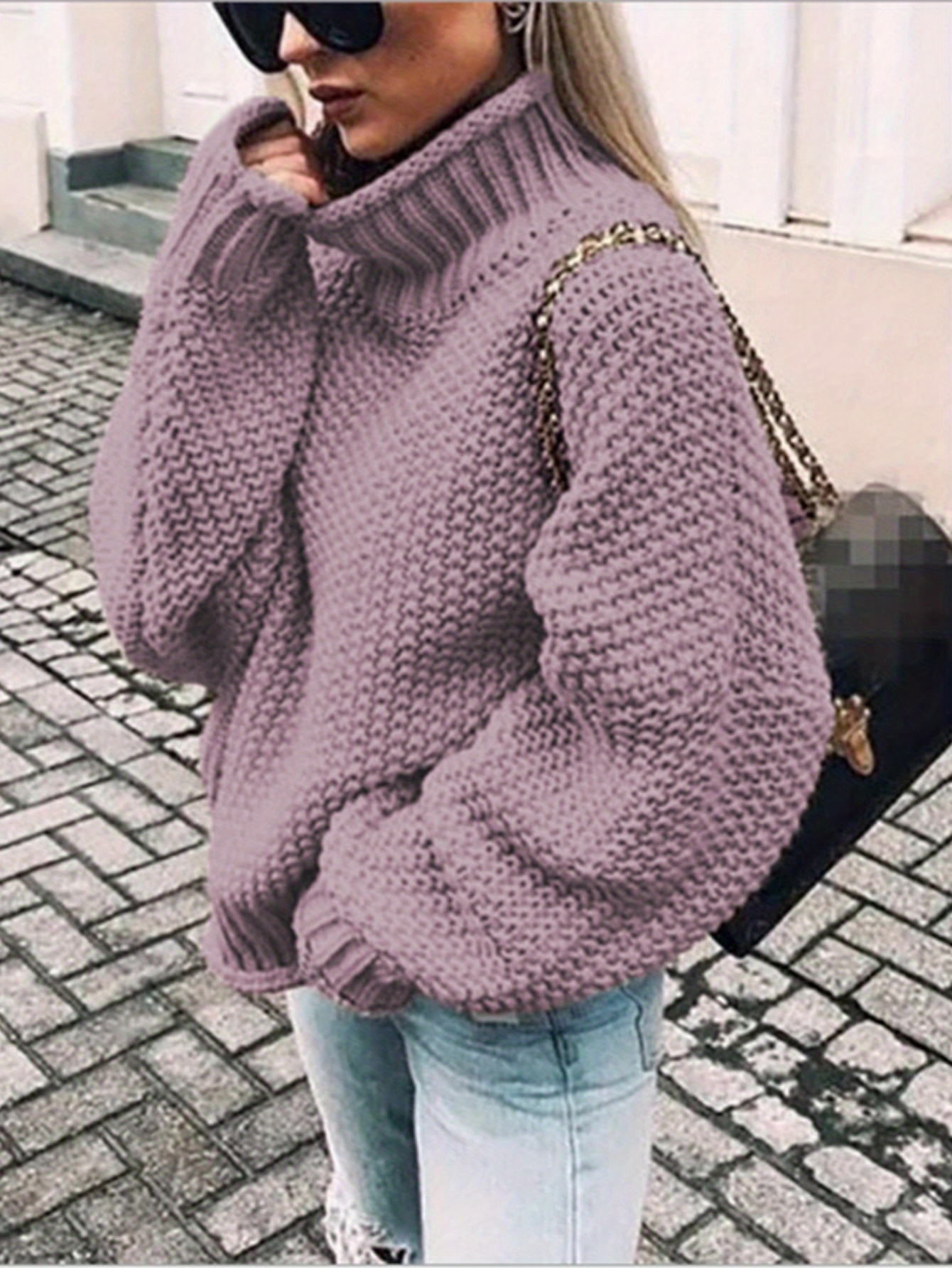 Plus Size - Women'S Plus Size Thick Sweater - Elegant High Neck Batwing Sleeves, Long Sleeve Winter Warmth, Solid Color (PurpleNavyBrown), Non-Stretch Fabric, Loose Fit for Casual & Formal Outfits - Cozy Fall & Winter Sweater for Women