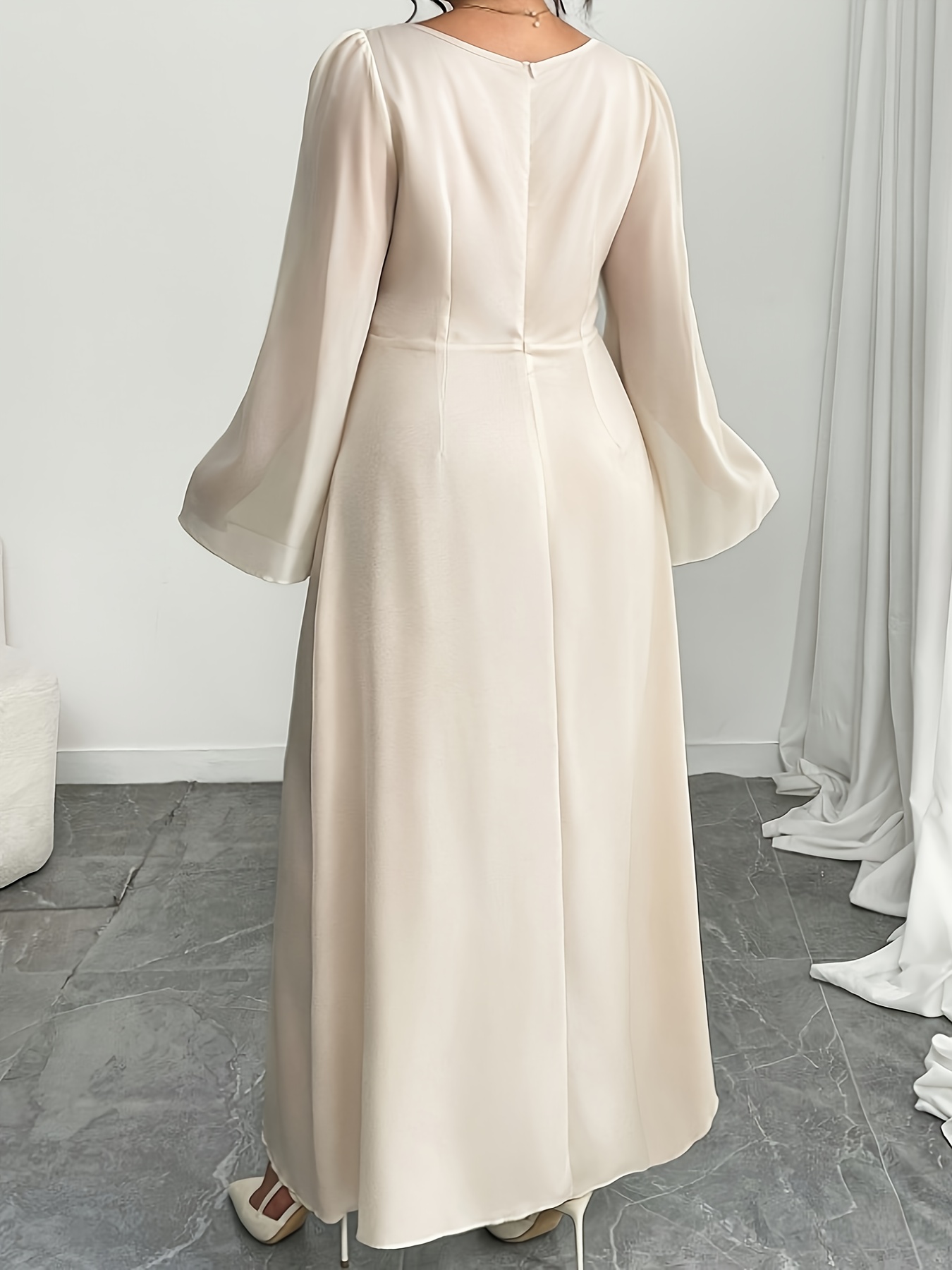 Plus Size, Women's Elegant Pencil Dress with Full A-Line Silhouette - Floor-Length Formal Evening gown, Beige// - Zipper Back Closure, Plus Size Available - Wedding, Party, Prom Dress - Hand Washable Luxury Evening Gown, Formal Dress for Women, Dresses for Women Elegant Classy Formal, Plus Size Formal Dresses Elegant Plus Size, Plus Size Dresses for Women Wedding Guest, Wedding Dresses for Women Plus Size, Highquality Fabric, Premium Stitching, Bridal Guest