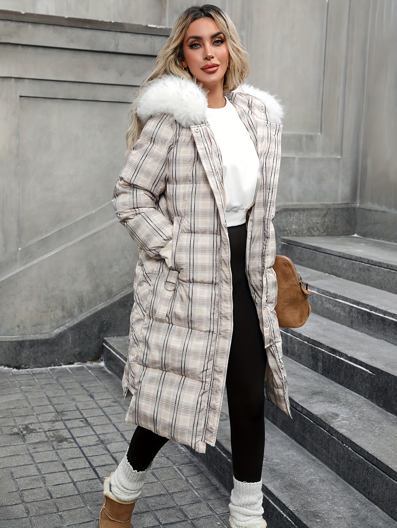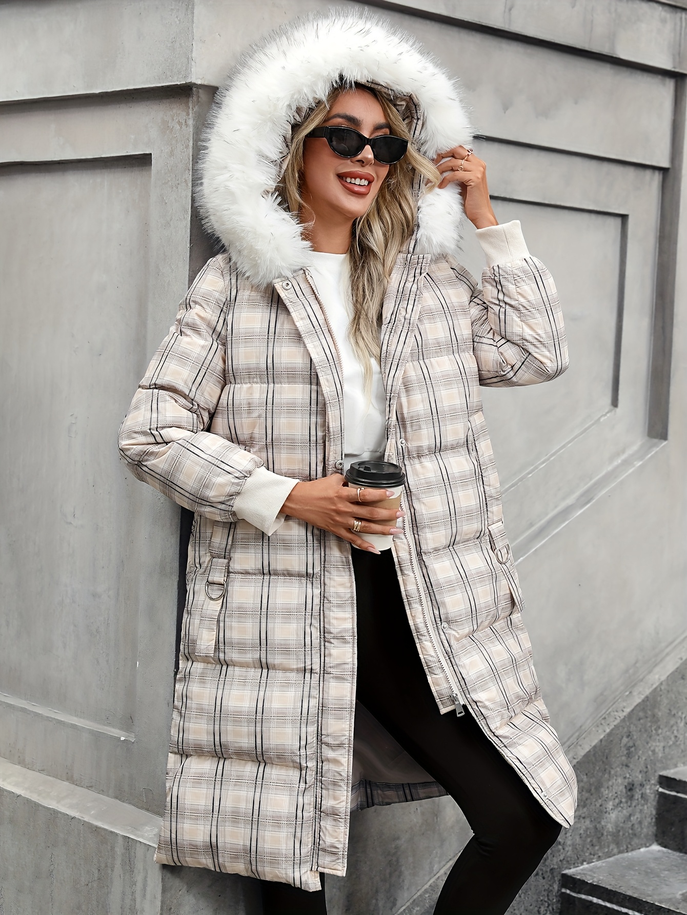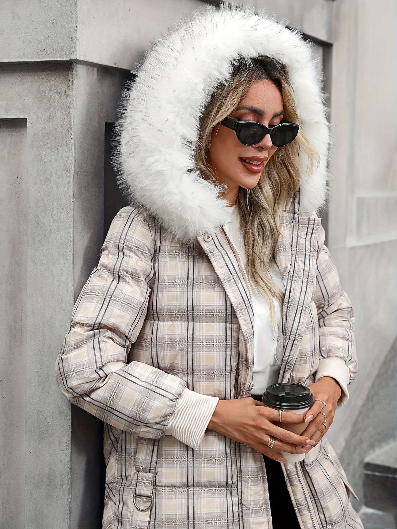 Plus Size - Women'S Heavy-Duty Winter Coat - Thermal Insulated Hooded Jacket with Plaid Pattern, Long Sleeve Outerwear for Cold Weather, Machine Washable (no Belt) - Plus Size Friendly, Winter Jacket, Casual Winter Wear