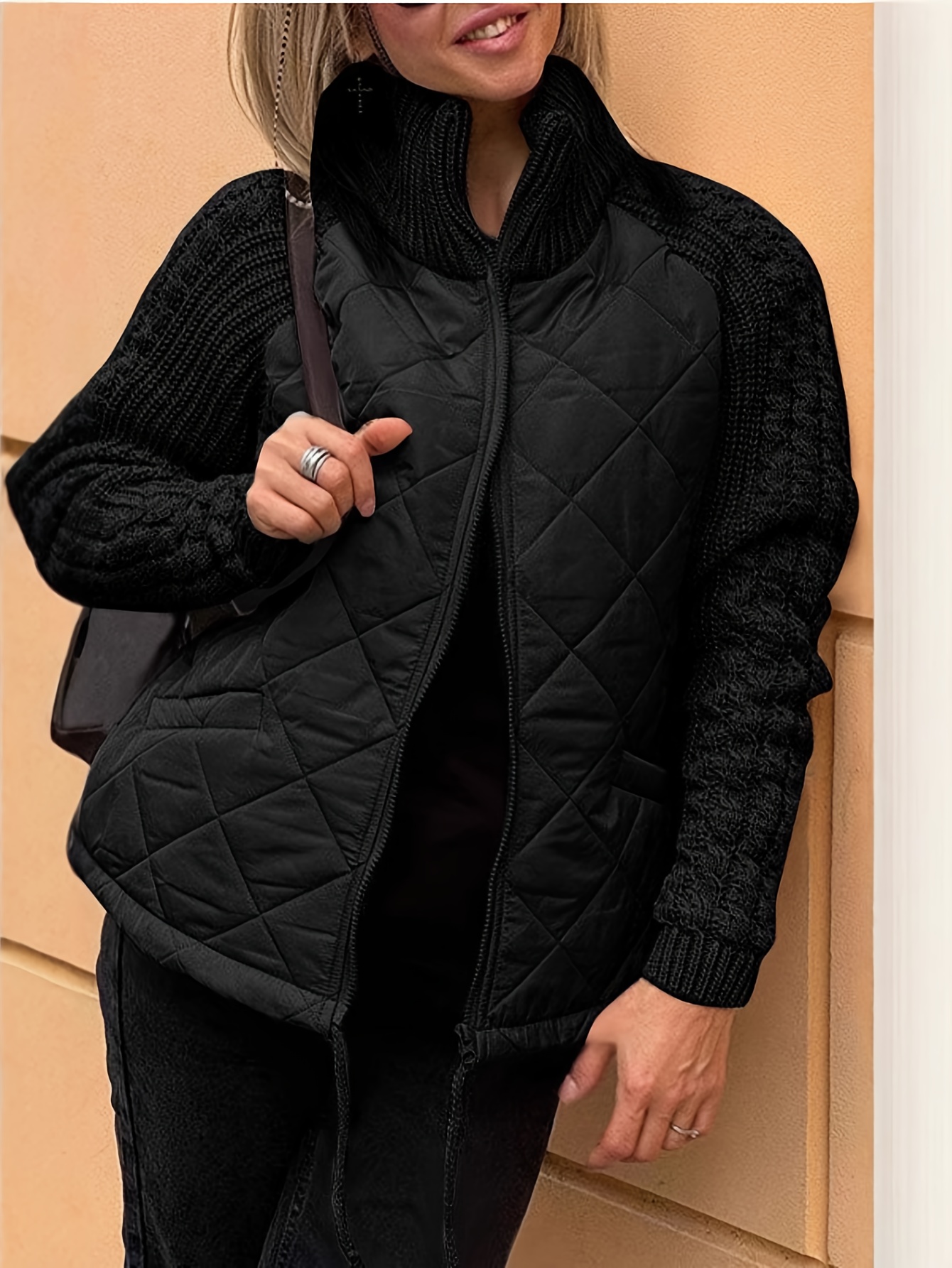 Plus Size Women's Thick Winter Cardigan Jacket - Zippered Collar Coat with Full-Zip Front, Stand Collar & Long Sleeves, Machine Washable Outerwear for Fall/Winter, Brown Trench Coat (Casual & Professional) - No Bulk Under Jacket