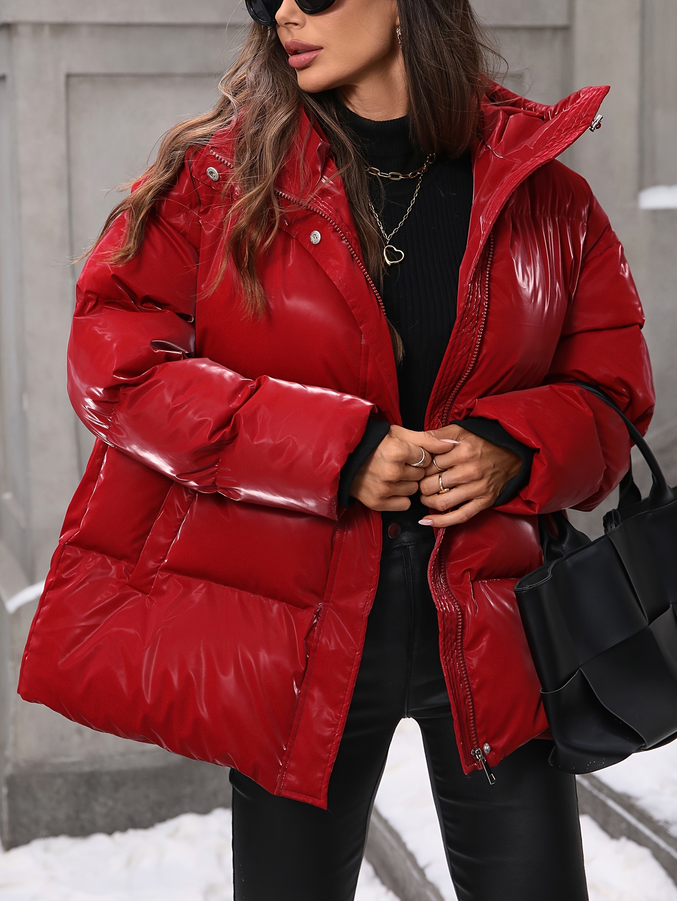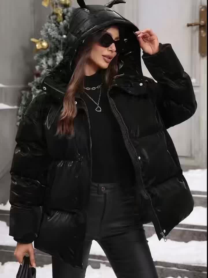 Women's Winter Hooded Jacket - Non-Stretch Outer Coat, Full-Length Zipper Front Closure, Machine Washable Cold Weather Outerwear for Everyday & Formal Events - Women's Outerwear, Ladies Winter Coats, Sleek Fabric Design, Classic Coat, Durable Material, Professional Women