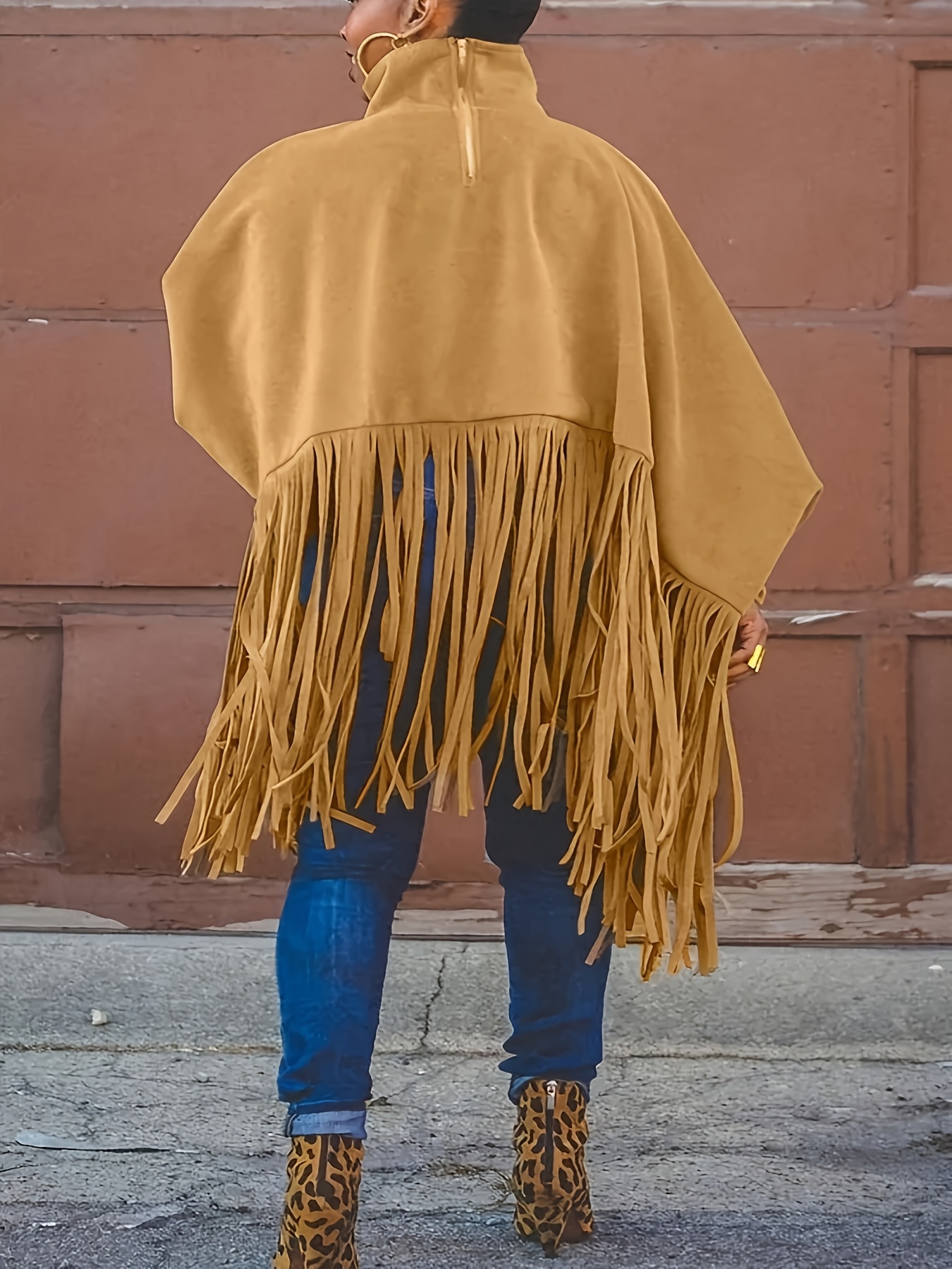 Plus Size, Plus Size Women's Batwing Sleeve Turtleneck Top with Fringe Hem - Loose Fit Casual Chic Long Sleeve Shirt, Solid Color Machine Washable Fall Winter Clothing for Women, Elegant Overlay, Highneck Shirt, Easycare Fabric, Spring Outfit, Durable Shirt, Curvy Fashion