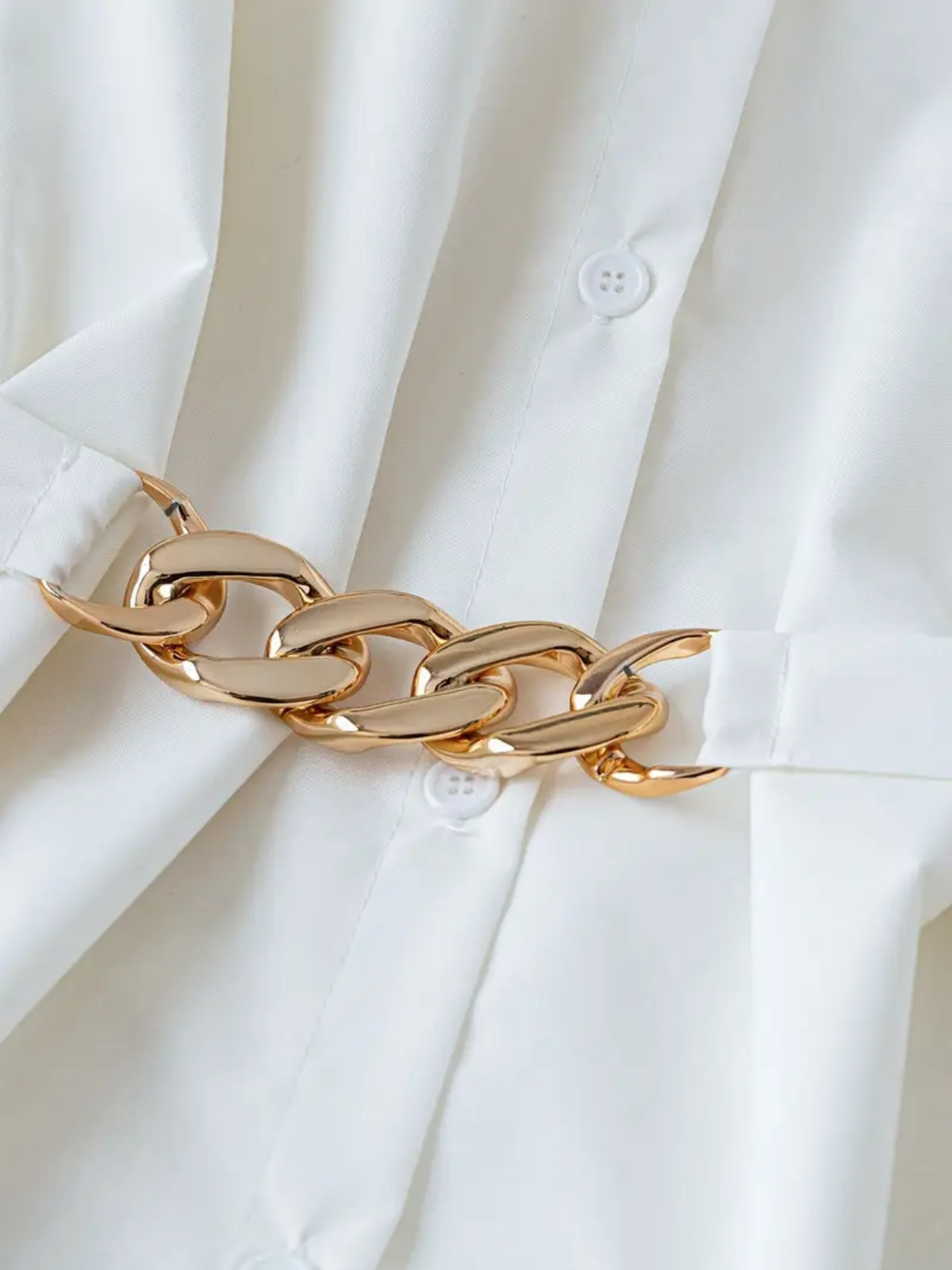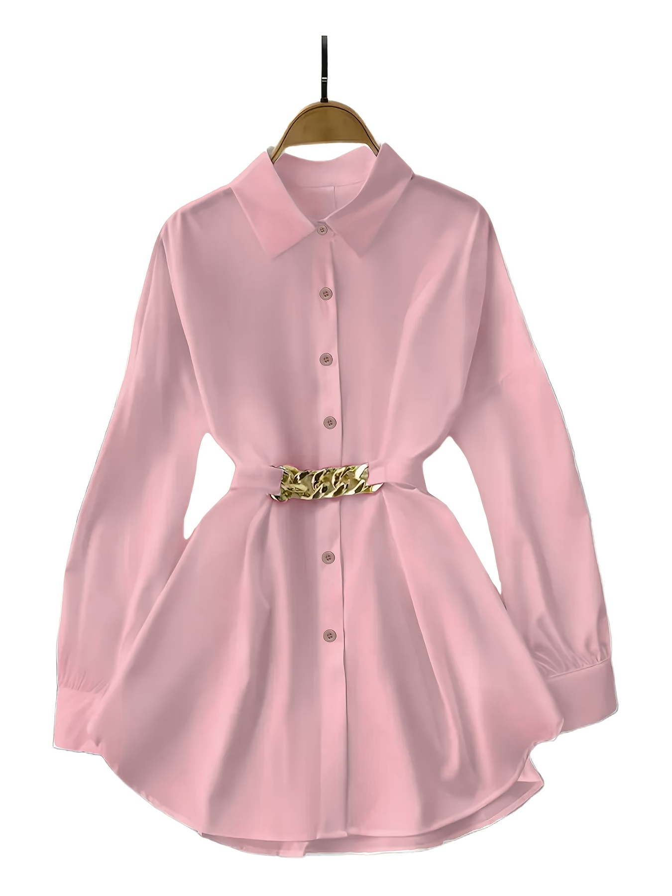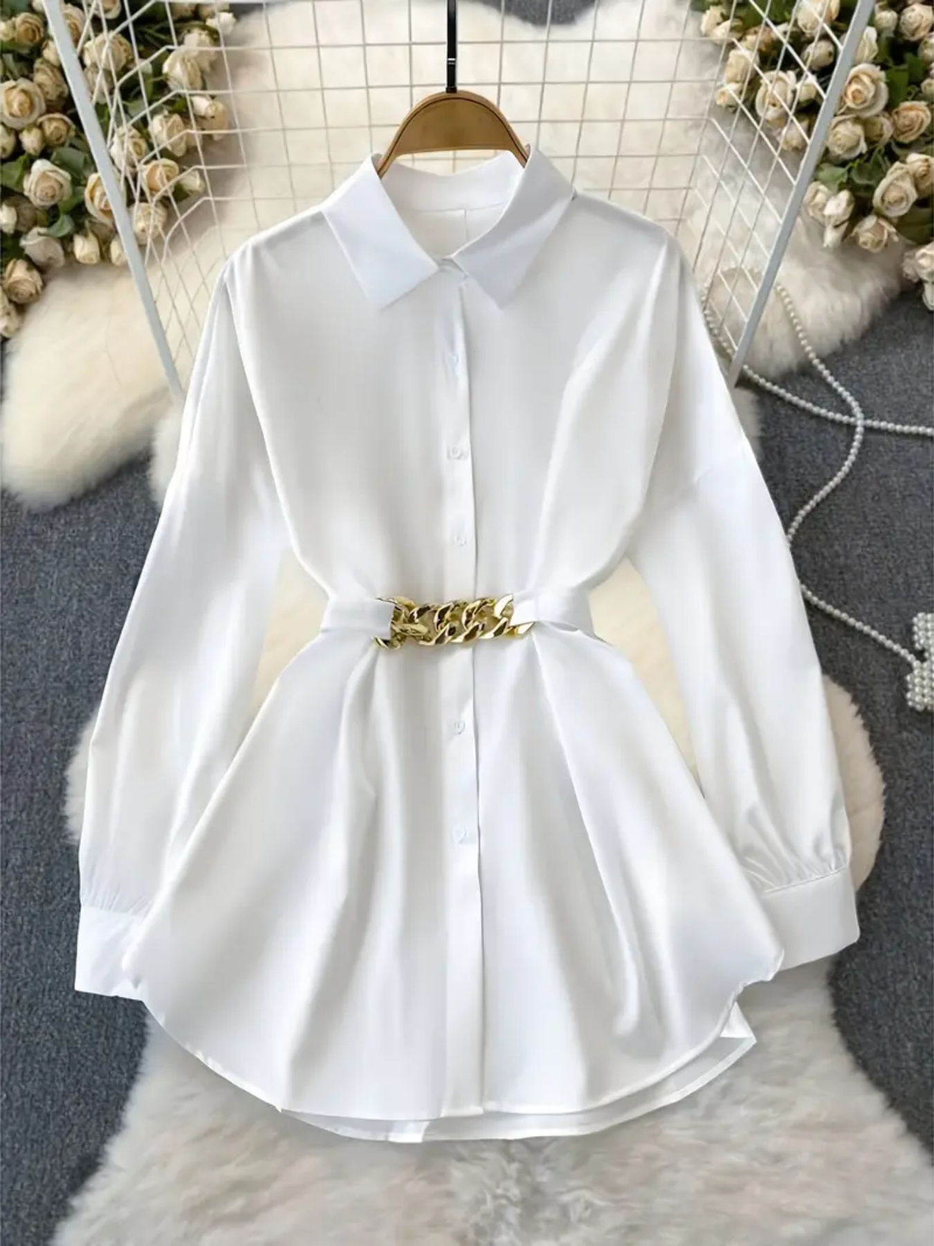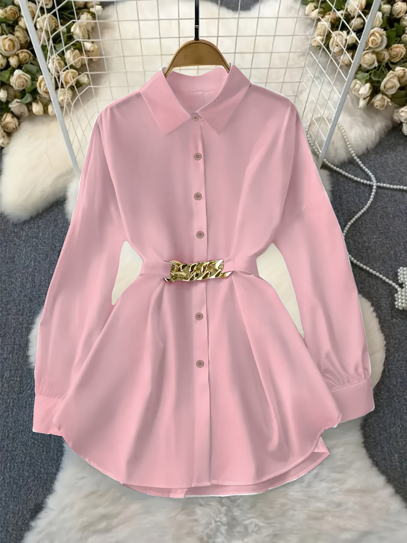 Plus Size, Women's Elegant Blouse Shirt - Long Sleeve Button-up top with Belt Accent, Non-Stretchy Fabric for Formal & Everyday Outfits - Office, Party, Casual Chic Outfits - Machine Washable Women's Clothing, Office Attire, Classic Collar, Polished Look, Stylish Top, Professional Women